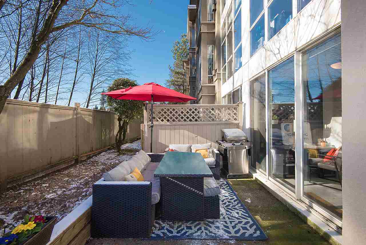You found it! A rarely available sunny fully fenced south facing patio unit overlooking greenbelt privacy. Inside it offers an excellent floorplan with separated beds + baths ansd no wasted space! Some recent upgrades include newer fridge, stove, paint, bath fixtures and cozy fireplace (tile and mantle). This immaculate suite is very conveniently located to Parkgate Shopping and Community Centre, golf, skiing and public transit. This will not last long!
