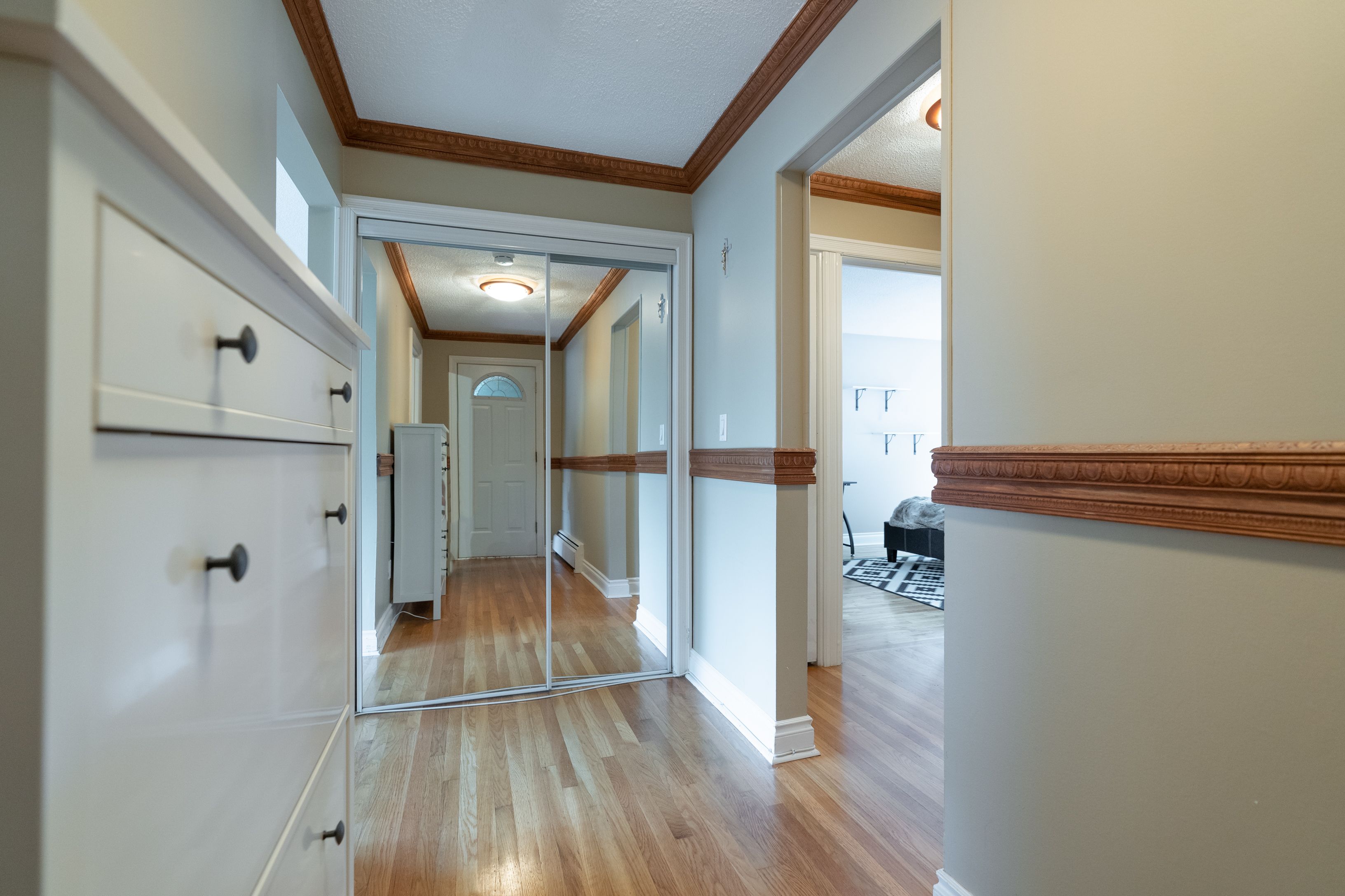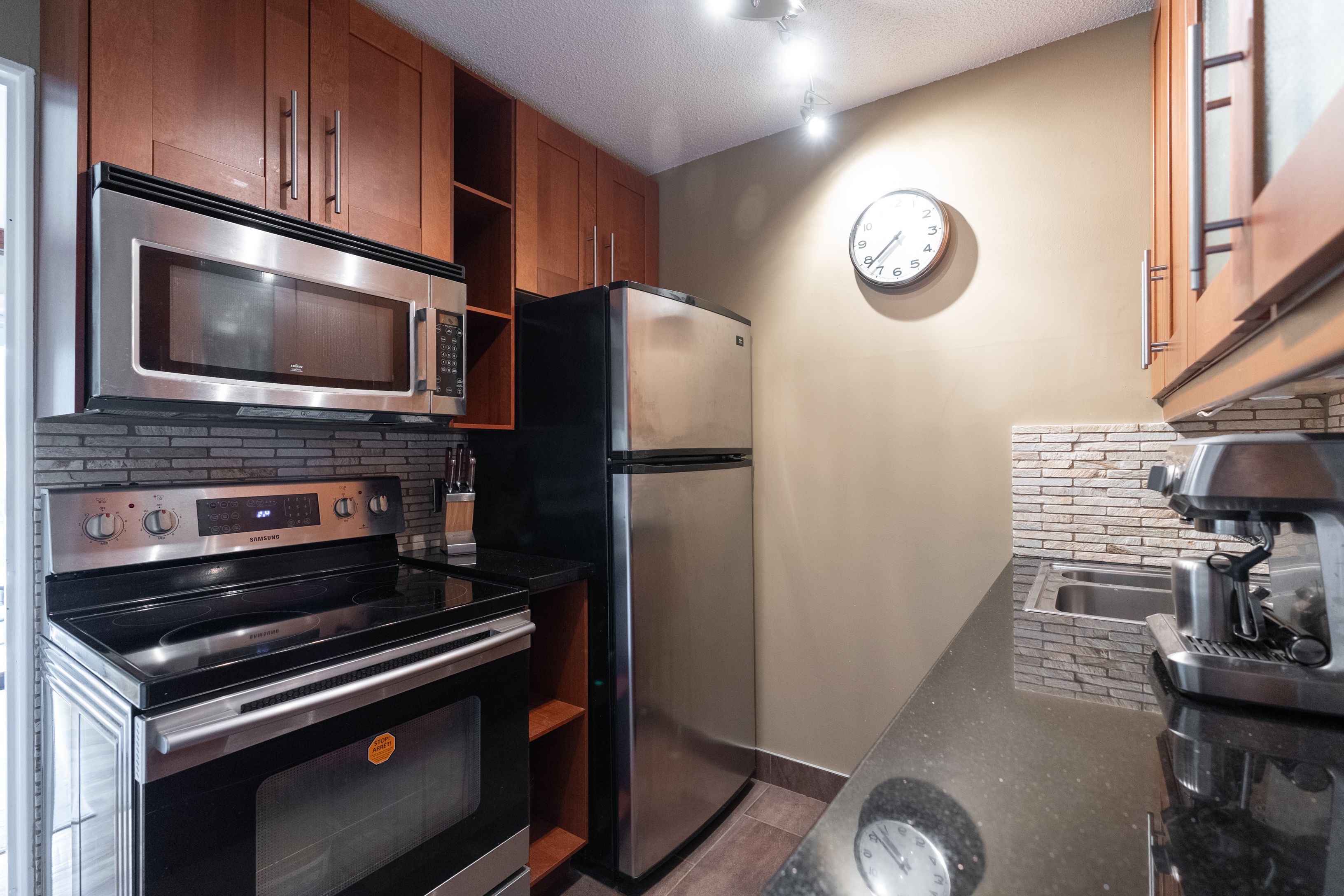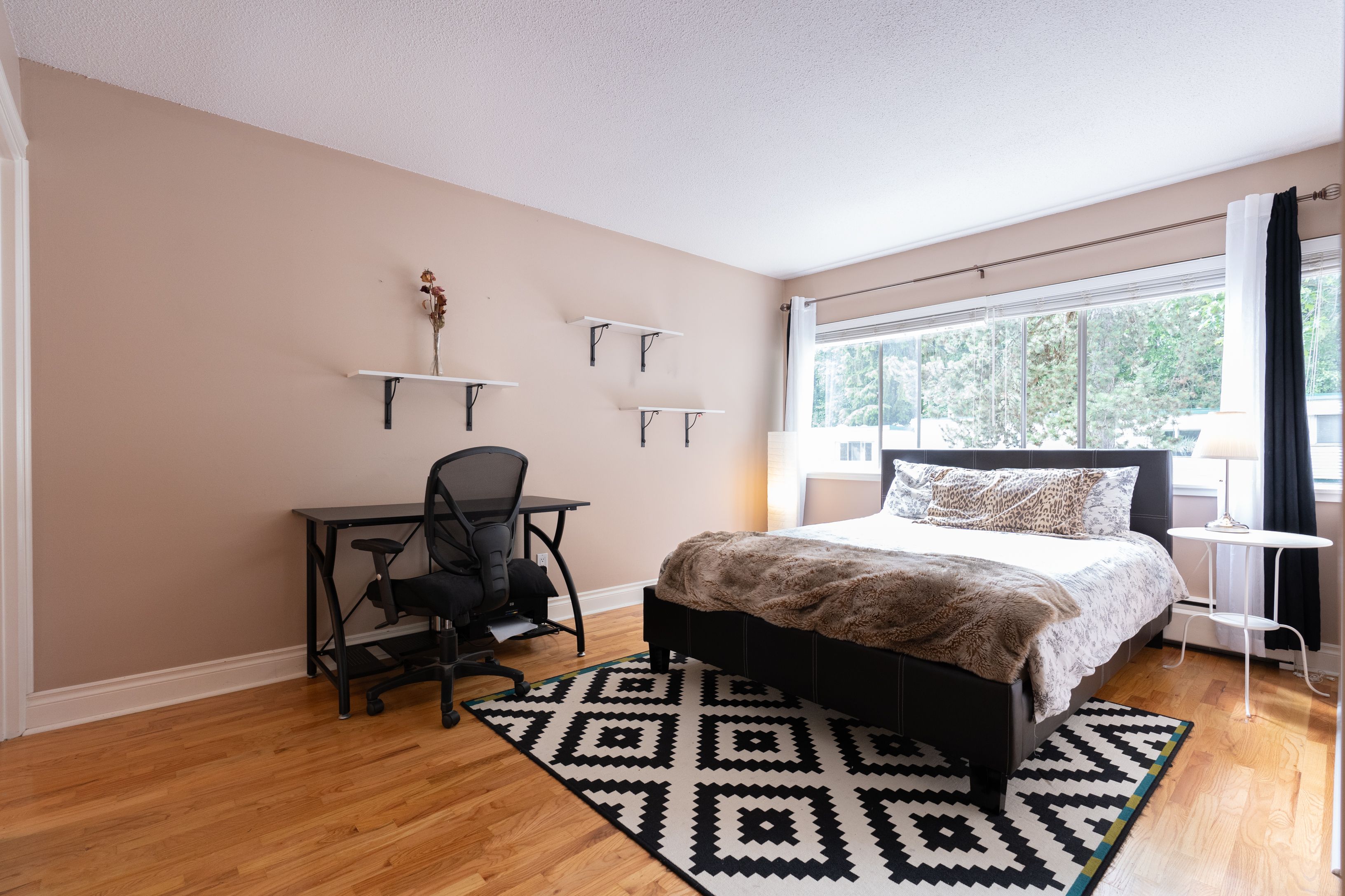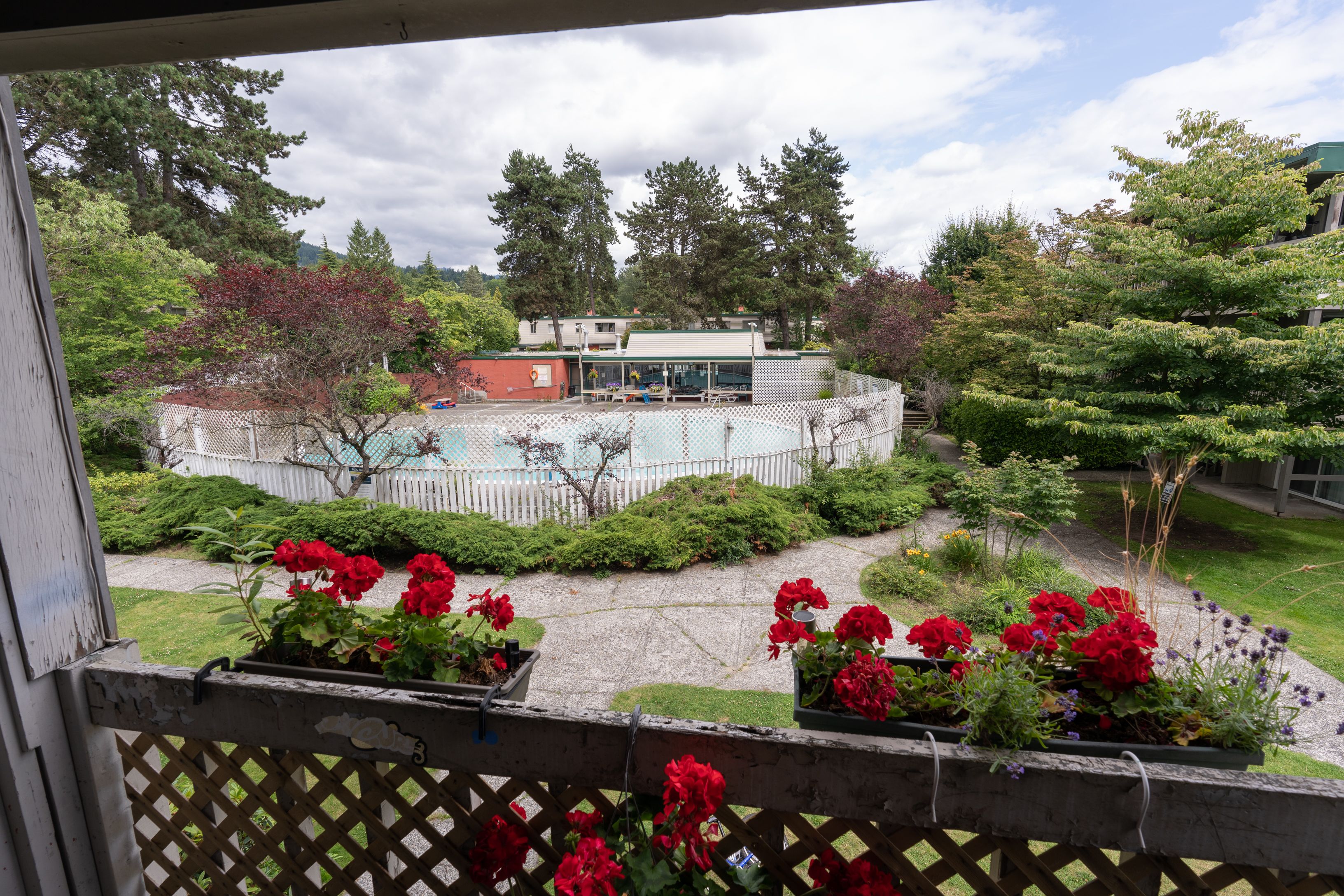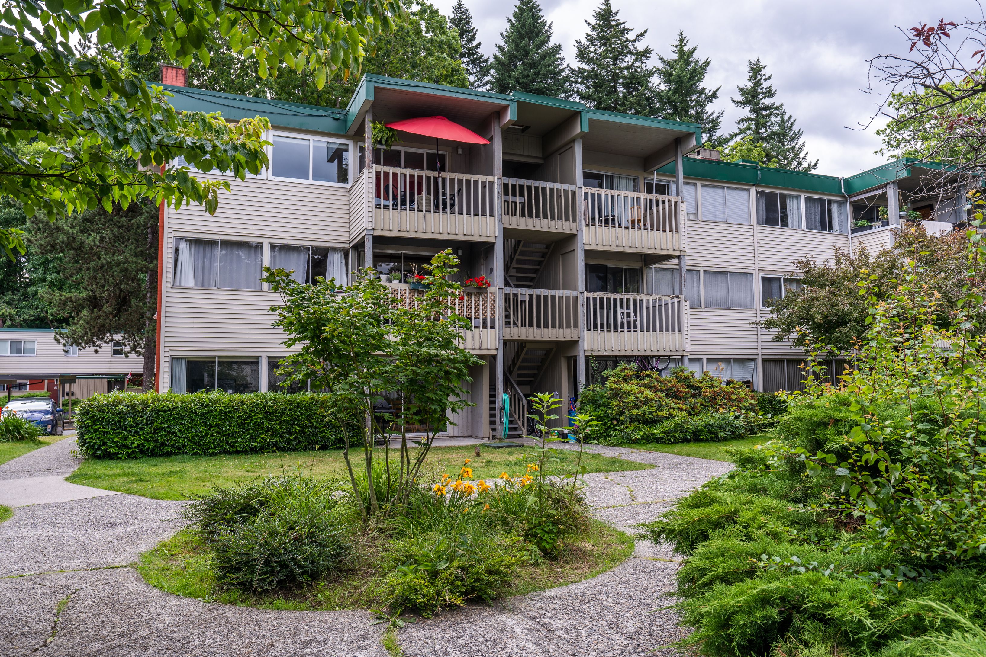 Bright,spacious and plenty of sun in this updated 1,012 sqft, 2 bedroom, 2 full bathroom CORNER/END unit home at the 'Cypress Gardens' complex in Upper Lonsdale! - This apartment features 3 walls of exposed windows! The master bedroom has a full ensuite. A modern and renovated kitchen boasts stainless steel appliances, wood cabinets, backsplash and tiled flooring. Beautiful original hardwood and neutral paint throughout. Large living/dining room areas with fireplace. INSUITE LAUNDRY ROOM contains washer/dryer and extra storage space. Time to BBQ on the covered balcony and enjoy the private outlook. *Outdoor pool/clubhouse on grounds. Monthly fee includes Heat and PROPERTY TAXES! *1 covered parking spot. Visitor parking. Rentals Allowed/Pet Friendly. Prime/central to everything location, yet so very quiet. Walk to Safeway, rec centre, parks, schools, restaurants, cafes. Showings by private appointment.- ITS ALL HERE WAITING!