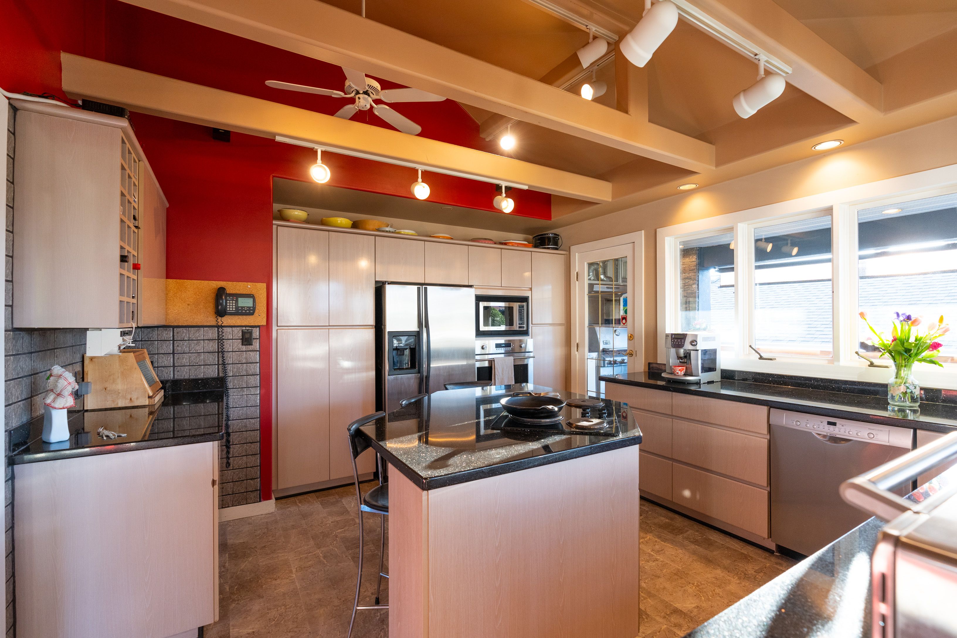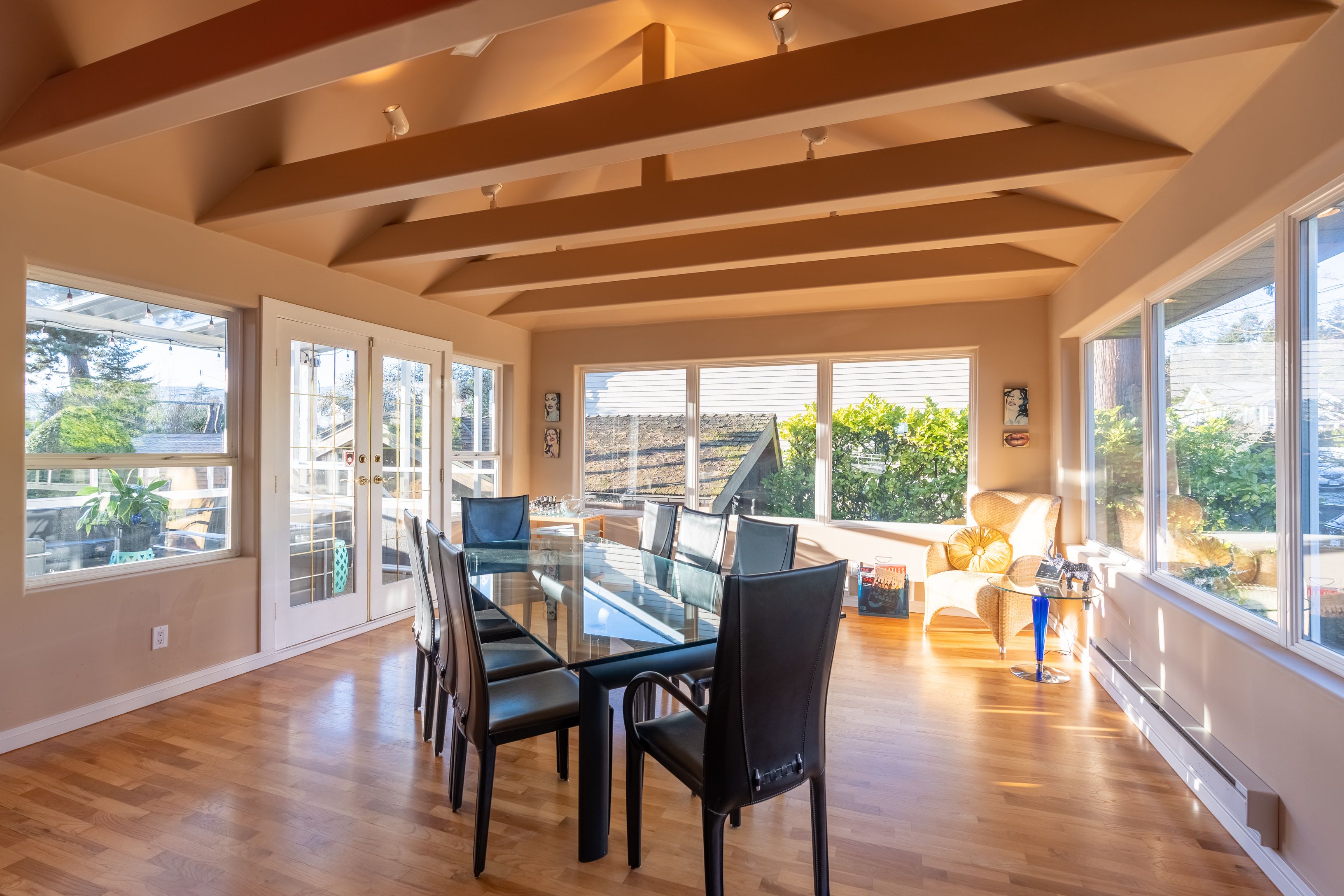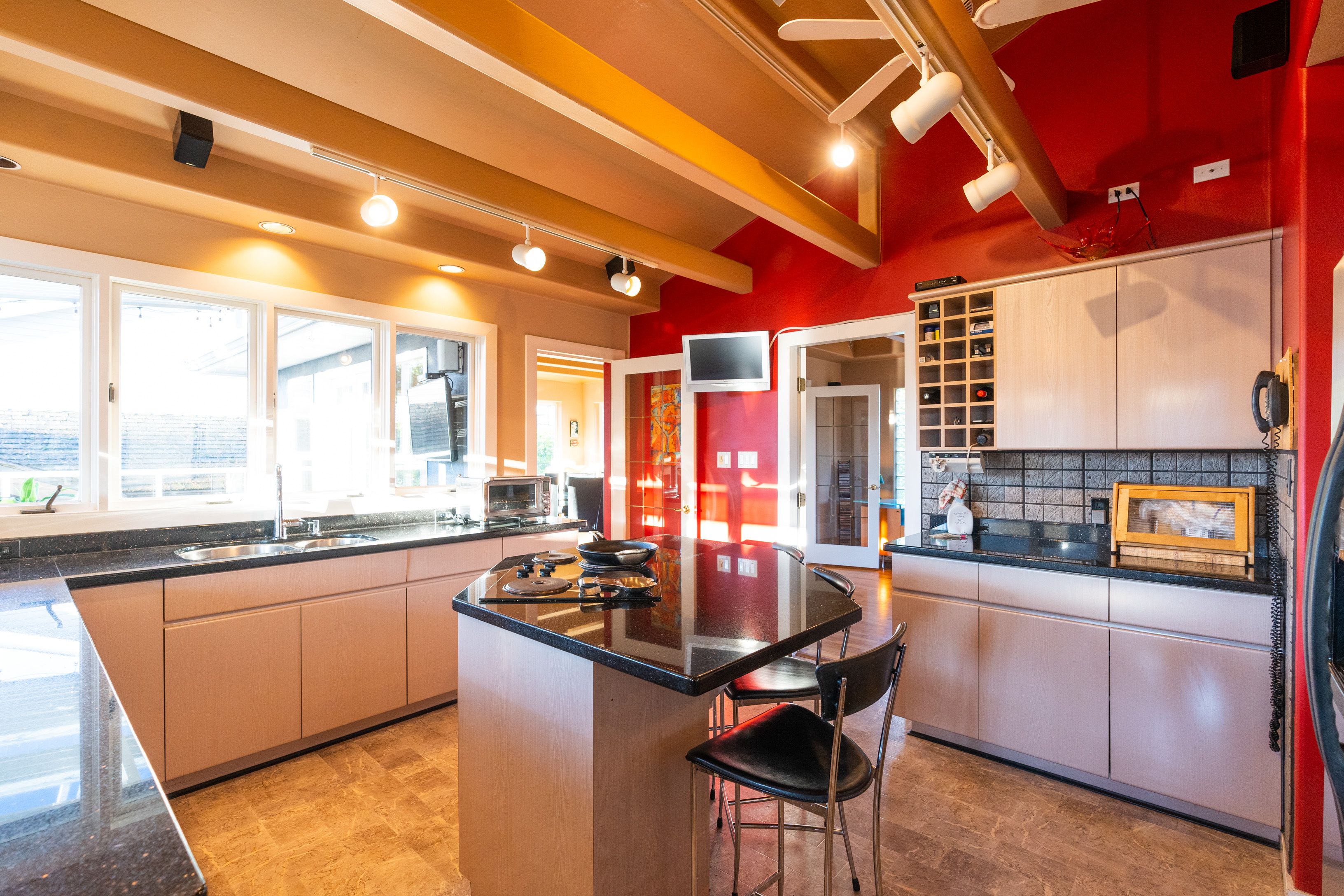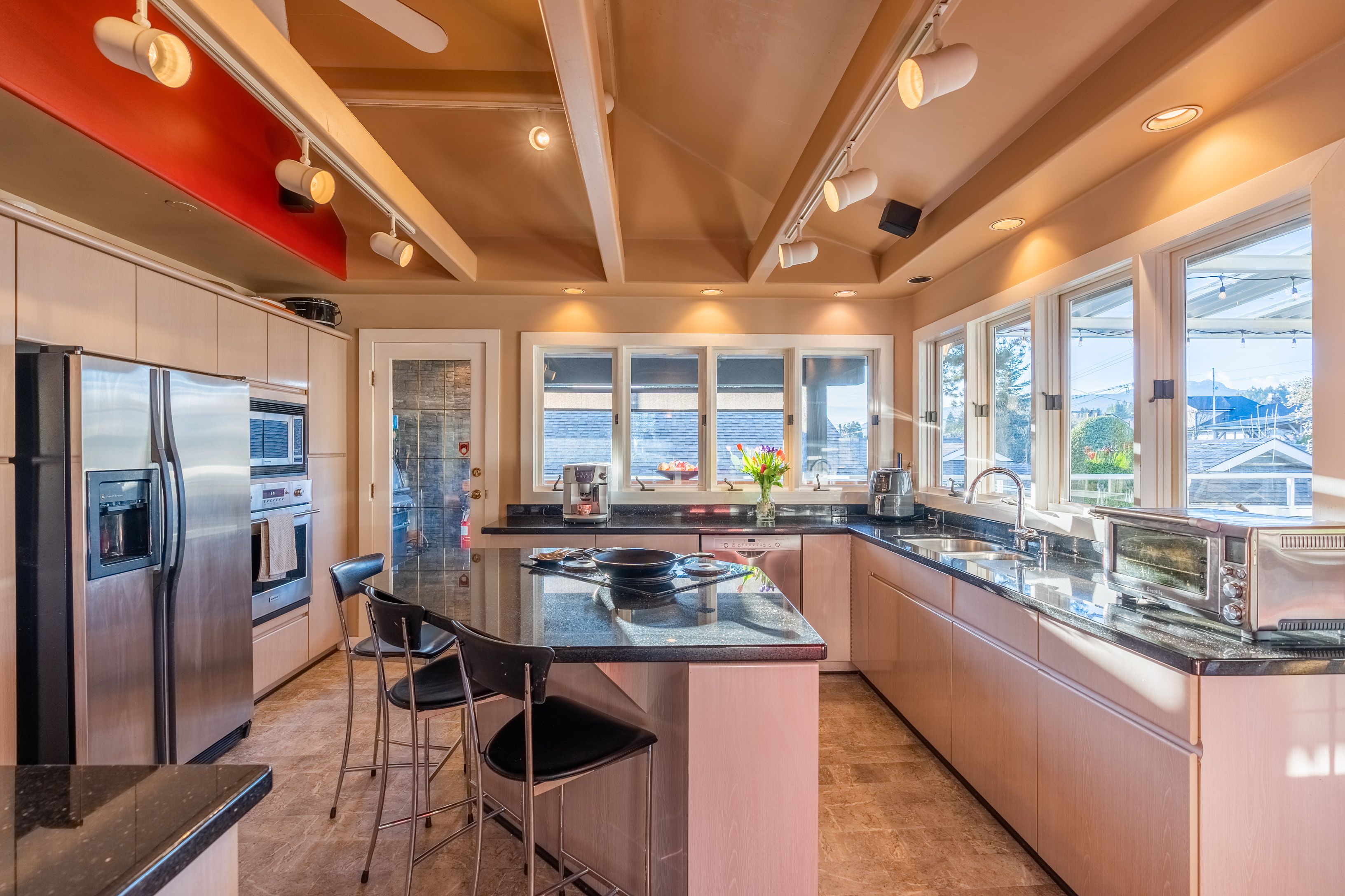 Bright & spacious 2 level, 3,113 sqft, 4 bedroom Boulevard family home on a 7,500 sqft lot featuring NEWER ADDITIONS/RENOVATIONS in & out! Upper floor highlighted with gourmet kitchen boasting stainless steel appliances and granite cooktop Island. Large living/dining areas shocase vaulted ceilings with hemlock beams. Incredible 5pc bathroom reno. Massive covered entertainment sized patio complimented with a built in river rock BBQ. Masterbed room has a private wrap around deck. Main level contains flex 1 or 2 bedroom suite, rec room & wine cellar. Custom detached sauna & hot tub gazebo. Garage and lots of storage.*NEWER; Modern/sunken lights, built-in stereo, hardwood, fans, exterior paint, masonry walls with illumination, quality artificial turf, side driveway/extra parking. Suitable for family daycare. Quiet street; walk to shopping & schools and the Lonsdale corridor.