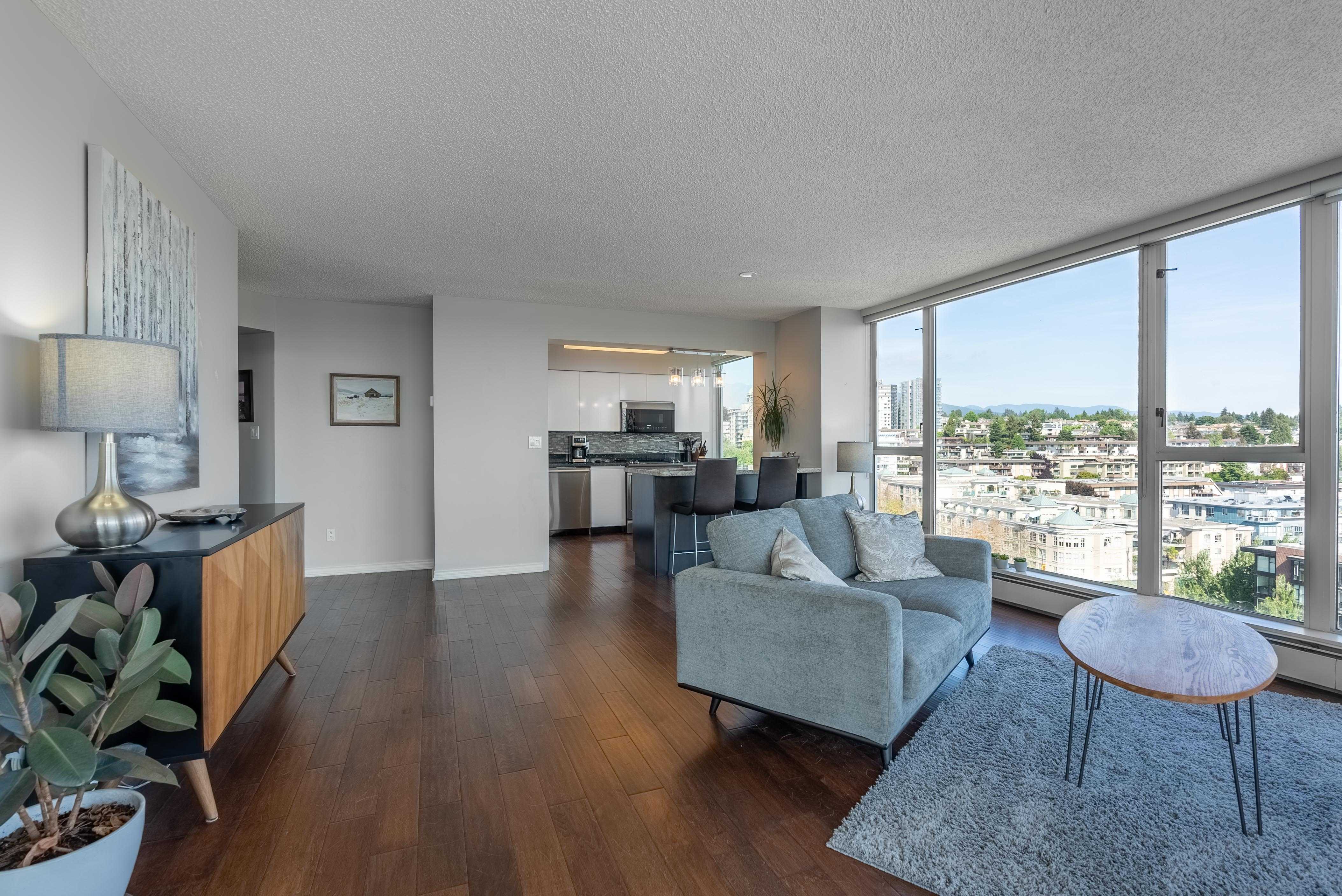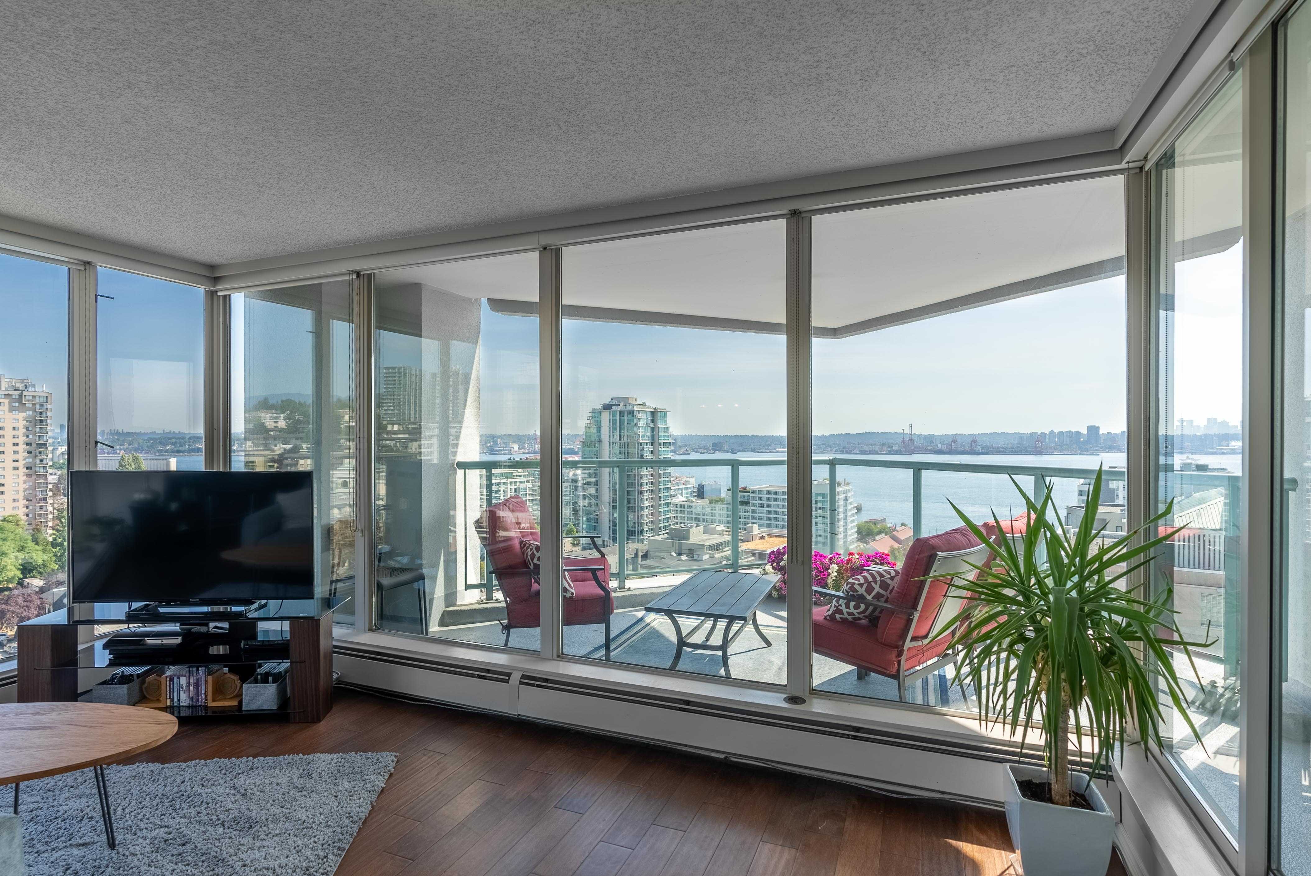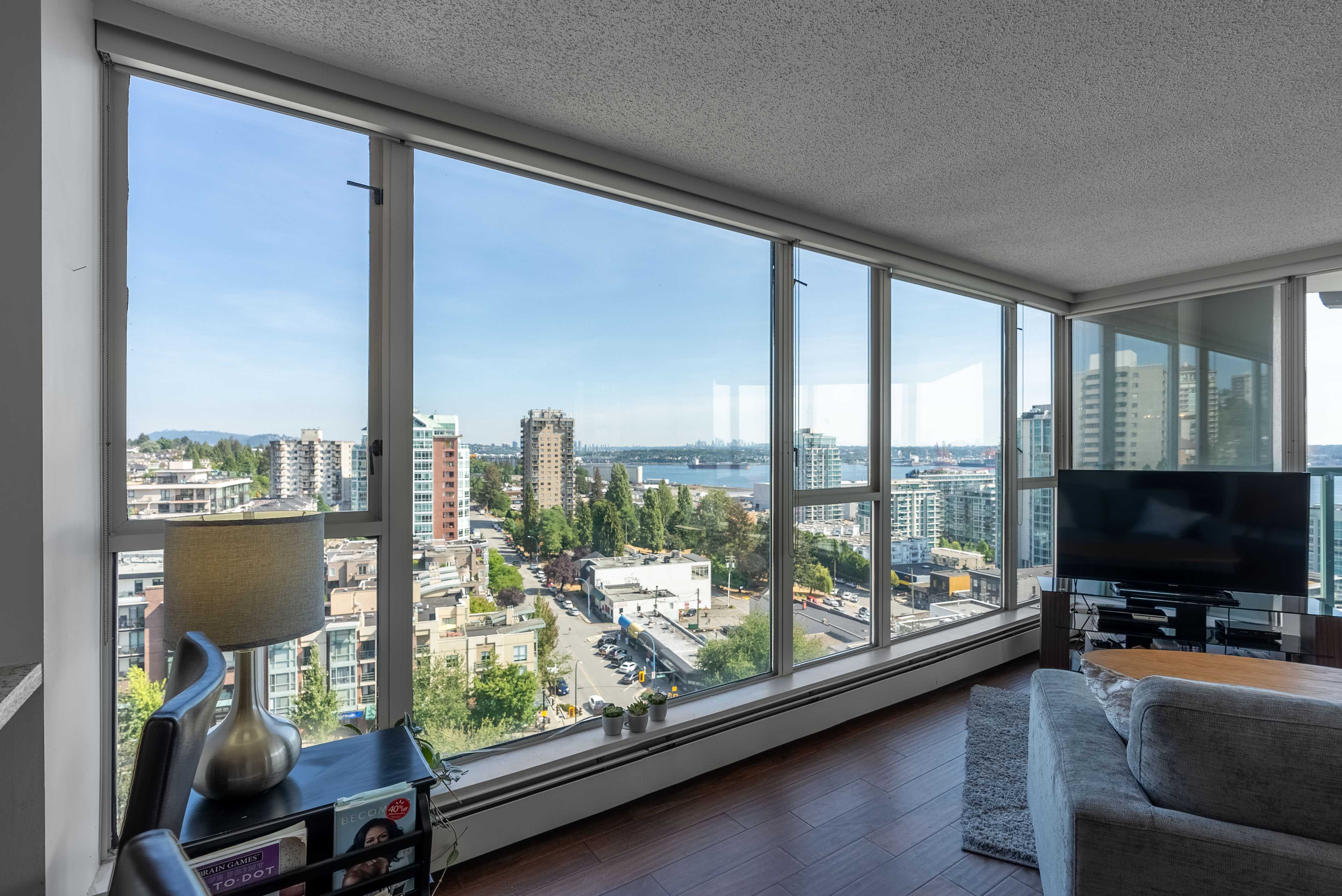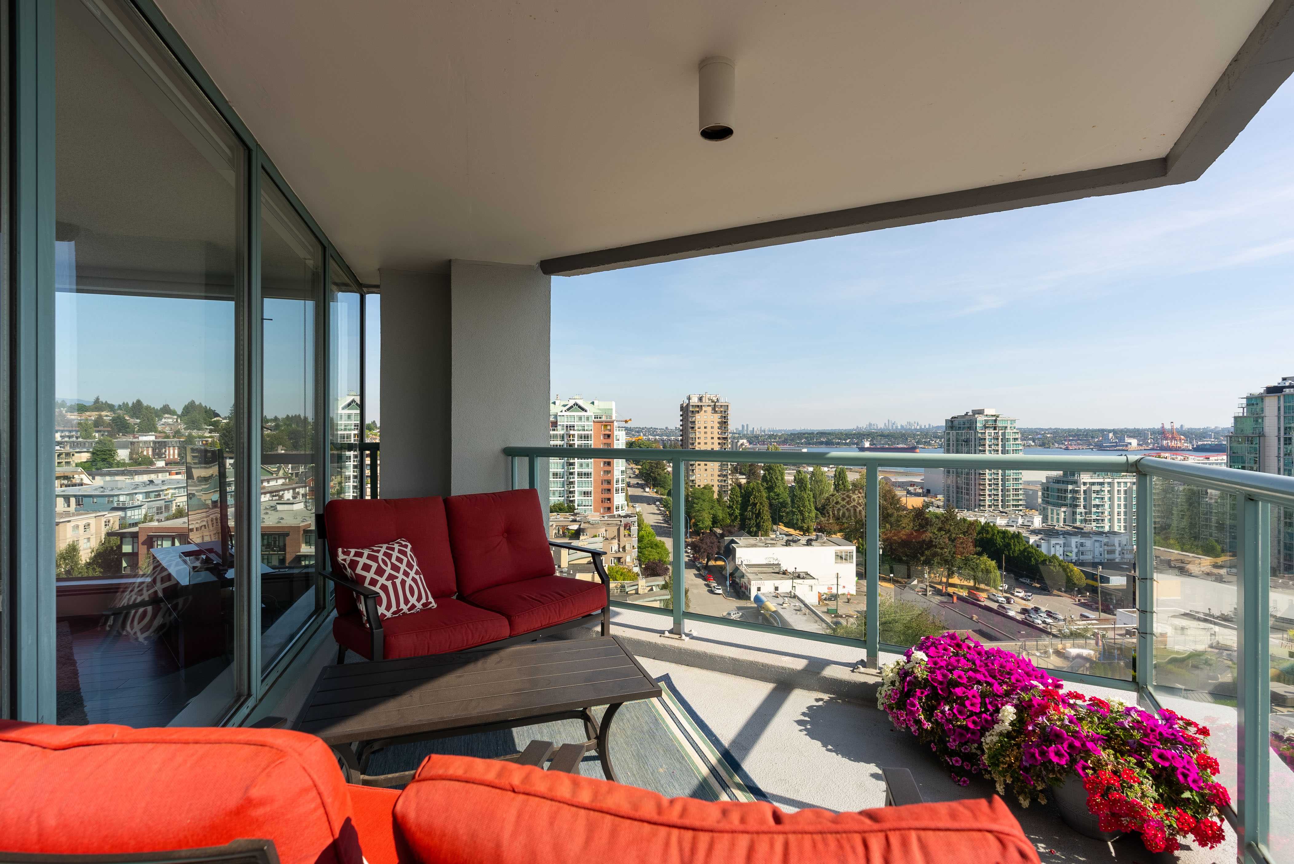 Unobstructed panoramic city & water views from way up on high! The 15th floor sees over local buildings! Views of Van City skyline, Burrard Inlet, Lions Gate Bridge, Mt. Baker, Metrotown/Burnaby Skyline and the North Shore Mountains. Sleek tiled entry, floor to ceiling windows and mesh/blackout blinds compliment the modern/renovated open concept floor plan. Updated kitchen boasts stainless steel appliances, granite tops. Both bathrooms updated with marble or granite themes. Solid dark flooring throughout. Bedrooms on opposite sides of home for privacy. Great closet space. Insuite laundry/built in vac. Plenty of storage.*Enjoy the outdoor pool, exercise centre. 2 underground parking spots. 1 storage locker. Walk to the Seabus. Absolute prime LOLO location; restaurants, cafes, shopping, Lonsdale Quay!