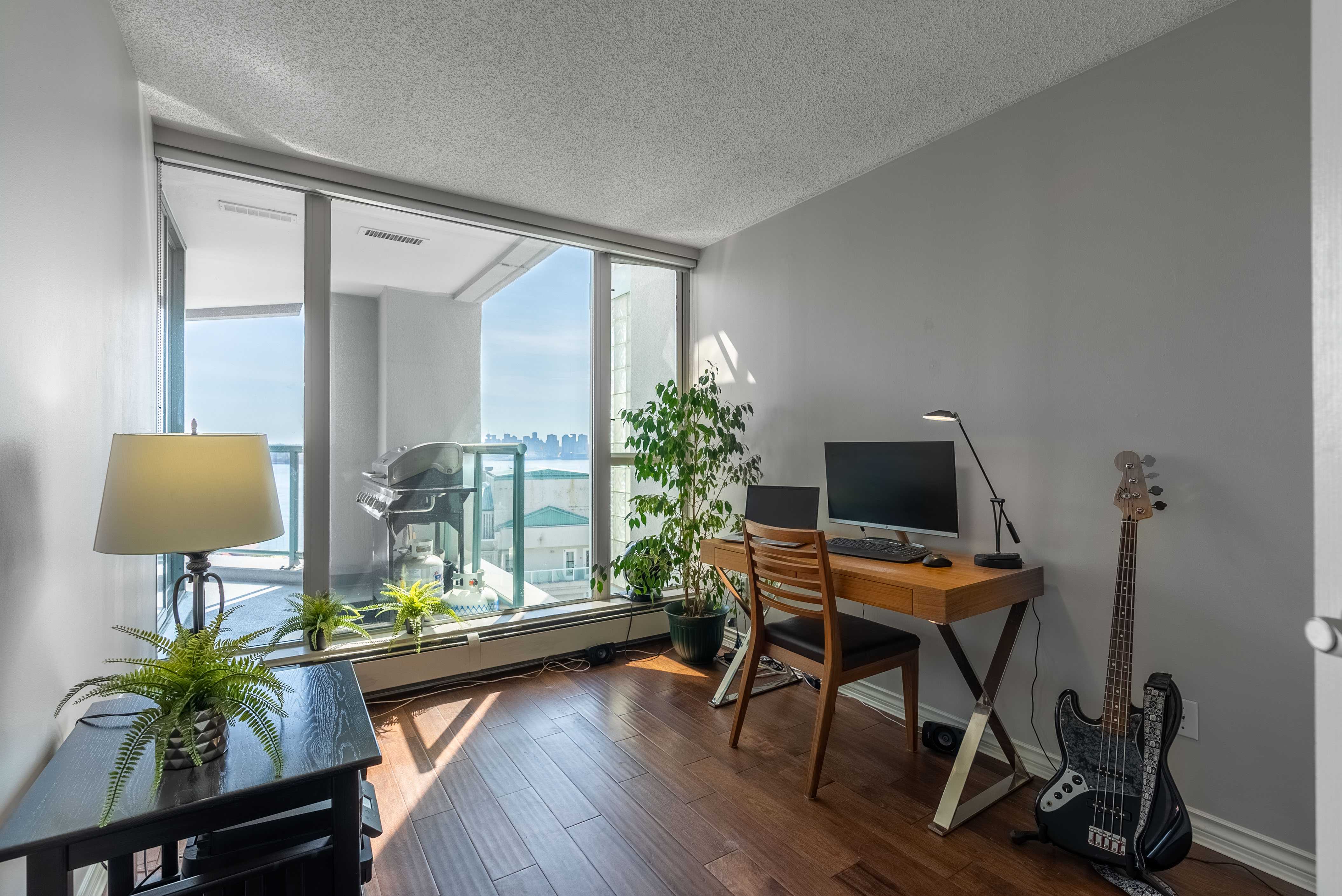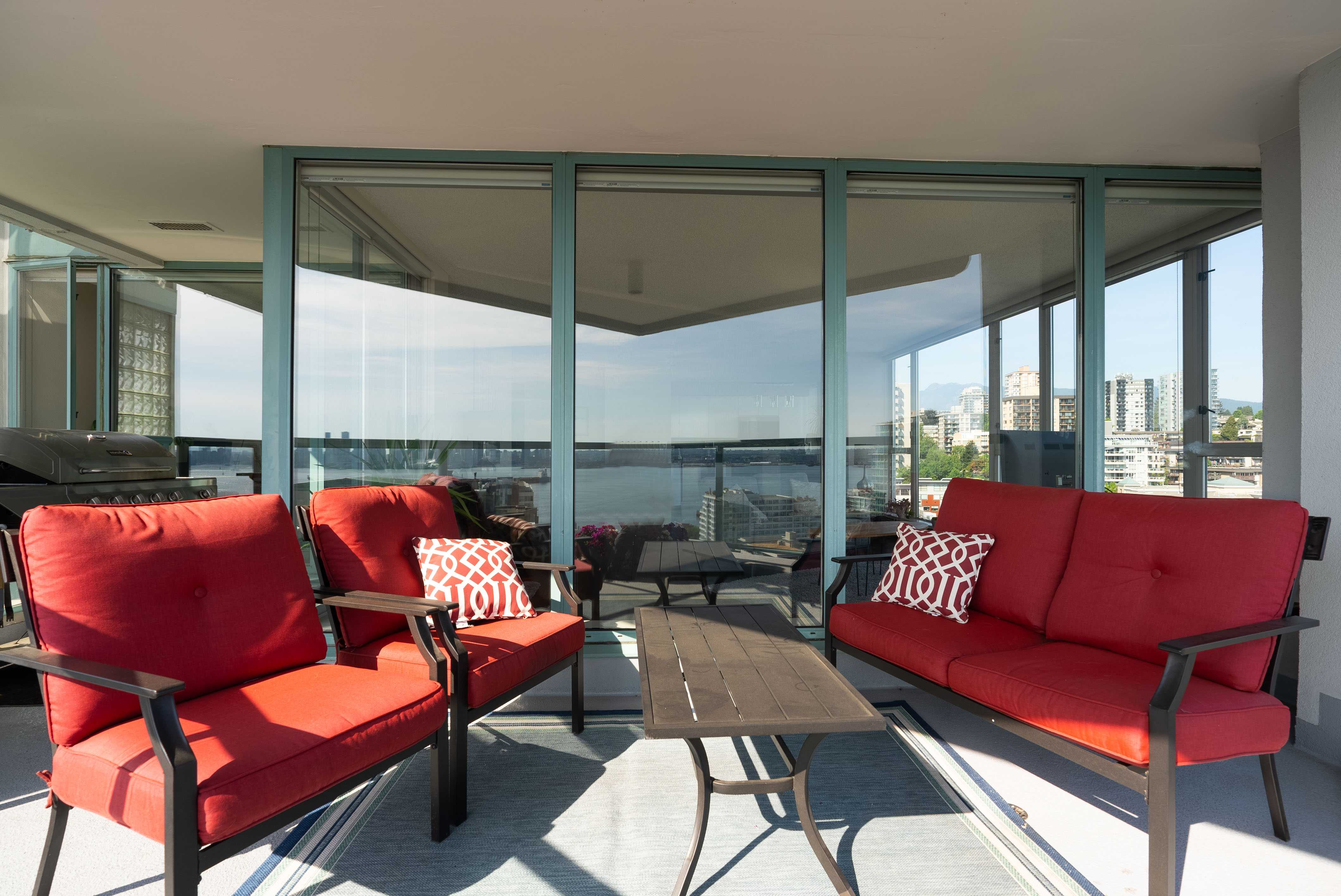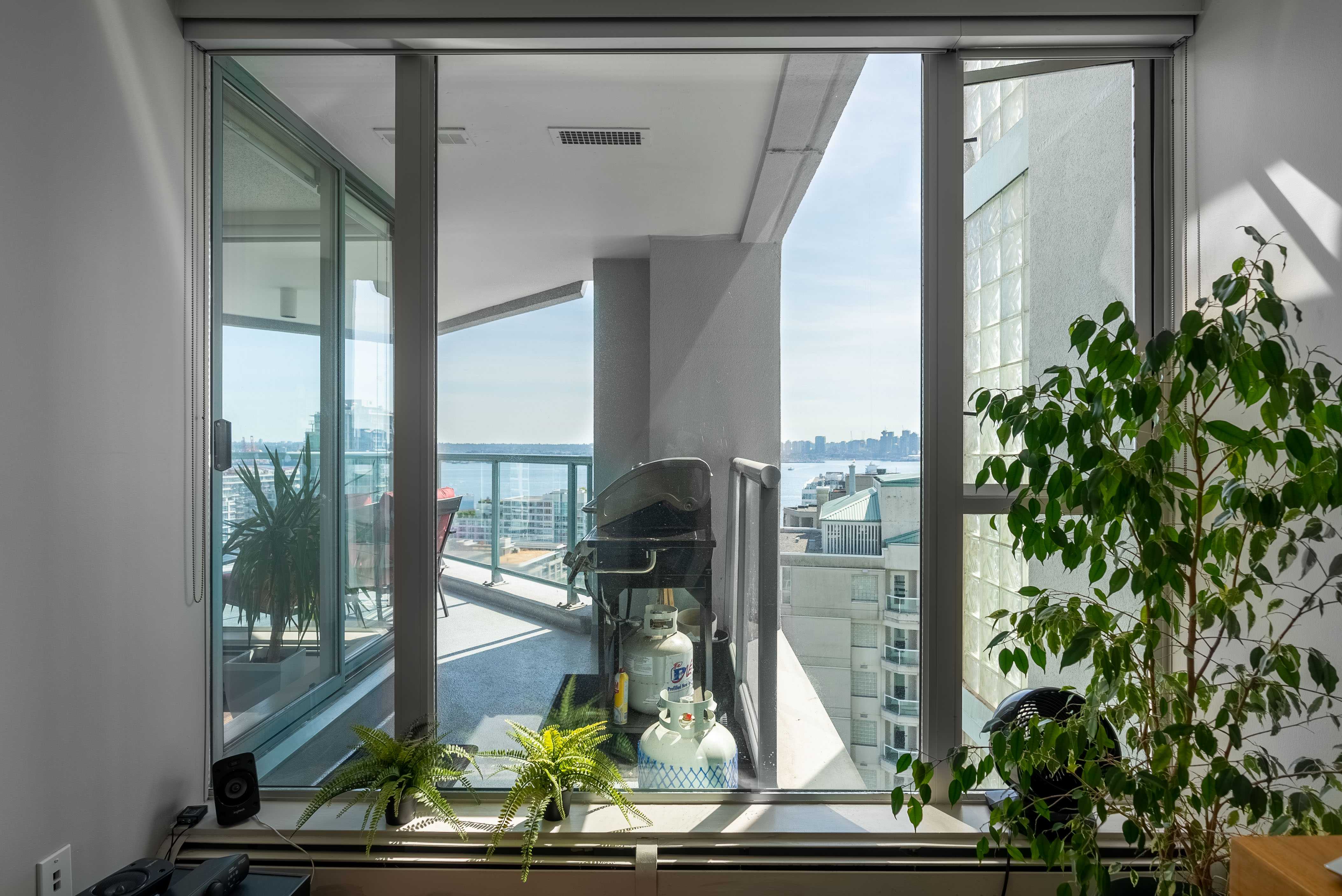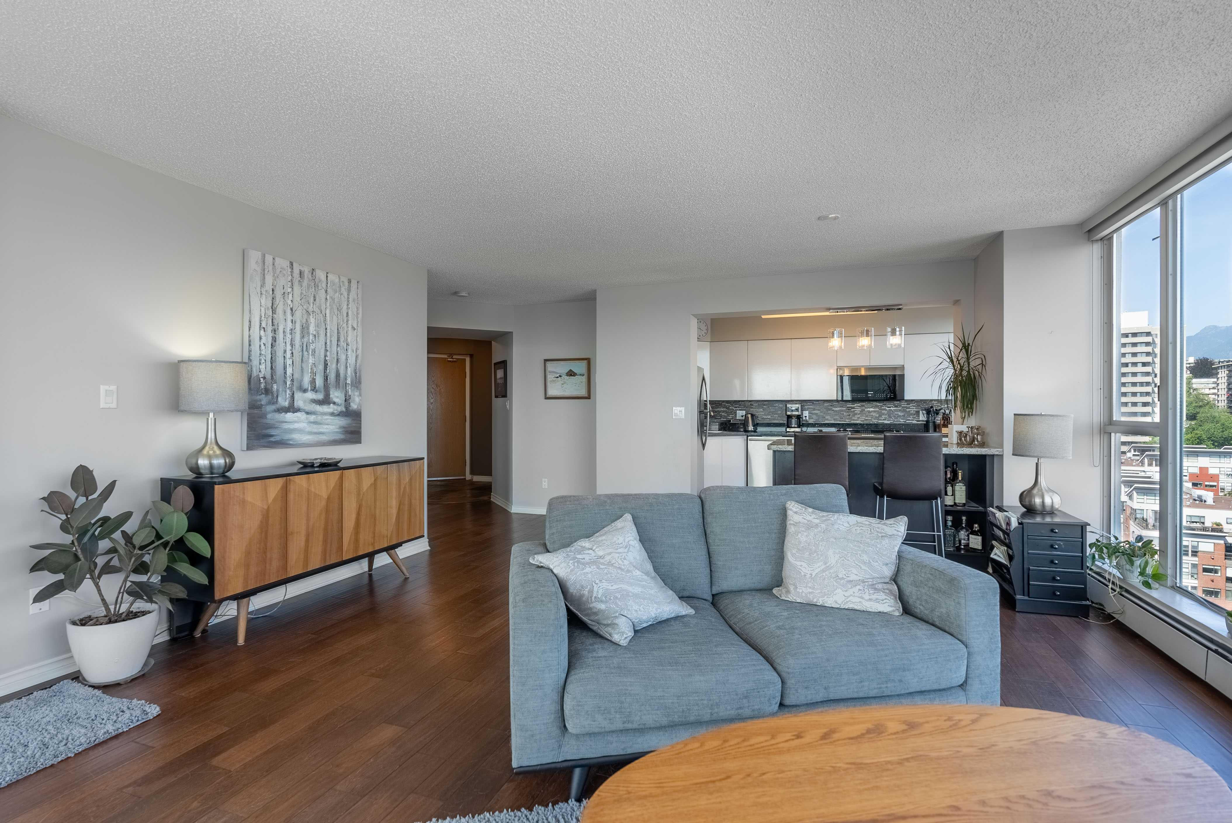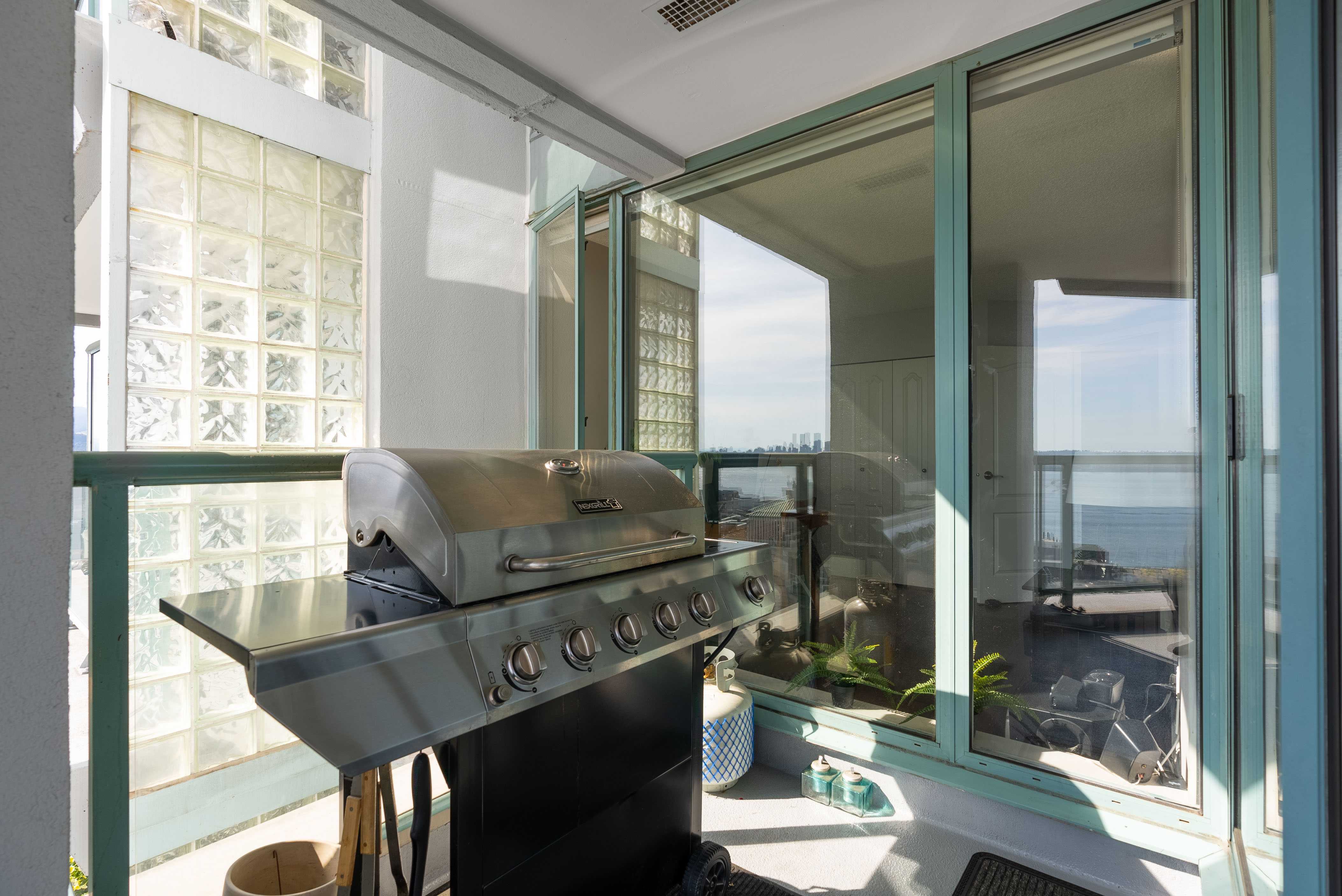 Unobstructed panoramic city & water views from way up on high! The 15th floor sees over local buildings! Views of Van City skyline, Burrard Inlet, Lions Gate Bridge, Mt. Baker, Metrotown/Burnaby Skyline and the North Shore Mountains. Sleek tiled entry, floor to ceiling windows and mesh/blackout blinds compliment the modern/renovated open concept floor plan. Updated kitchen boasts stainless steel appliances, granite tops. Both bathrooms updated with marble or granite themes. Solid dark flooring throughout. Bedrooms on opposite sides of home for privacy. Great closet space. Insuite laundry/built in vac. Plenty of storage.*Enjoy the outdoor pool, exercise centre. 2 underground parking spots. 1 storage locker. Walk to the Seabus. Absolute prime LOLO location; restaurants, cafes, shopping, Lonsdale Quay!