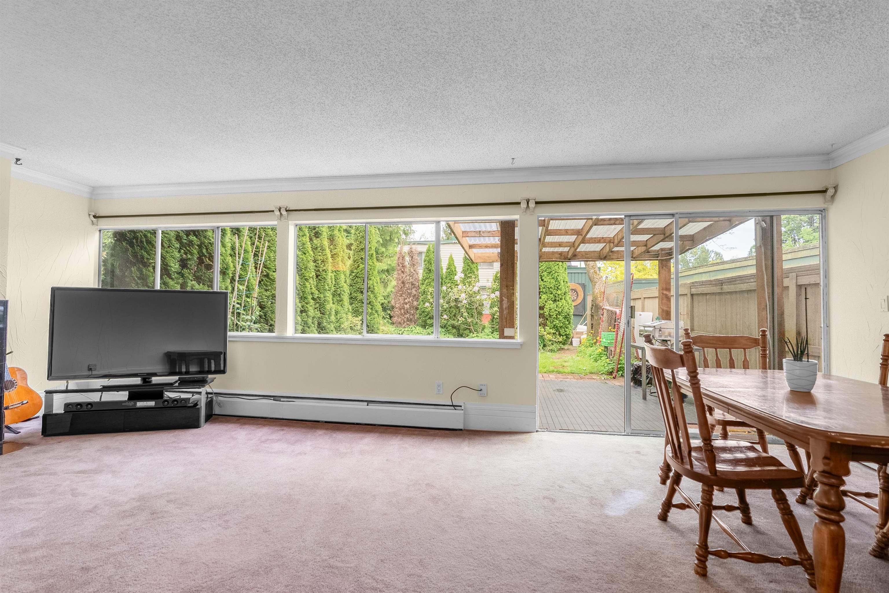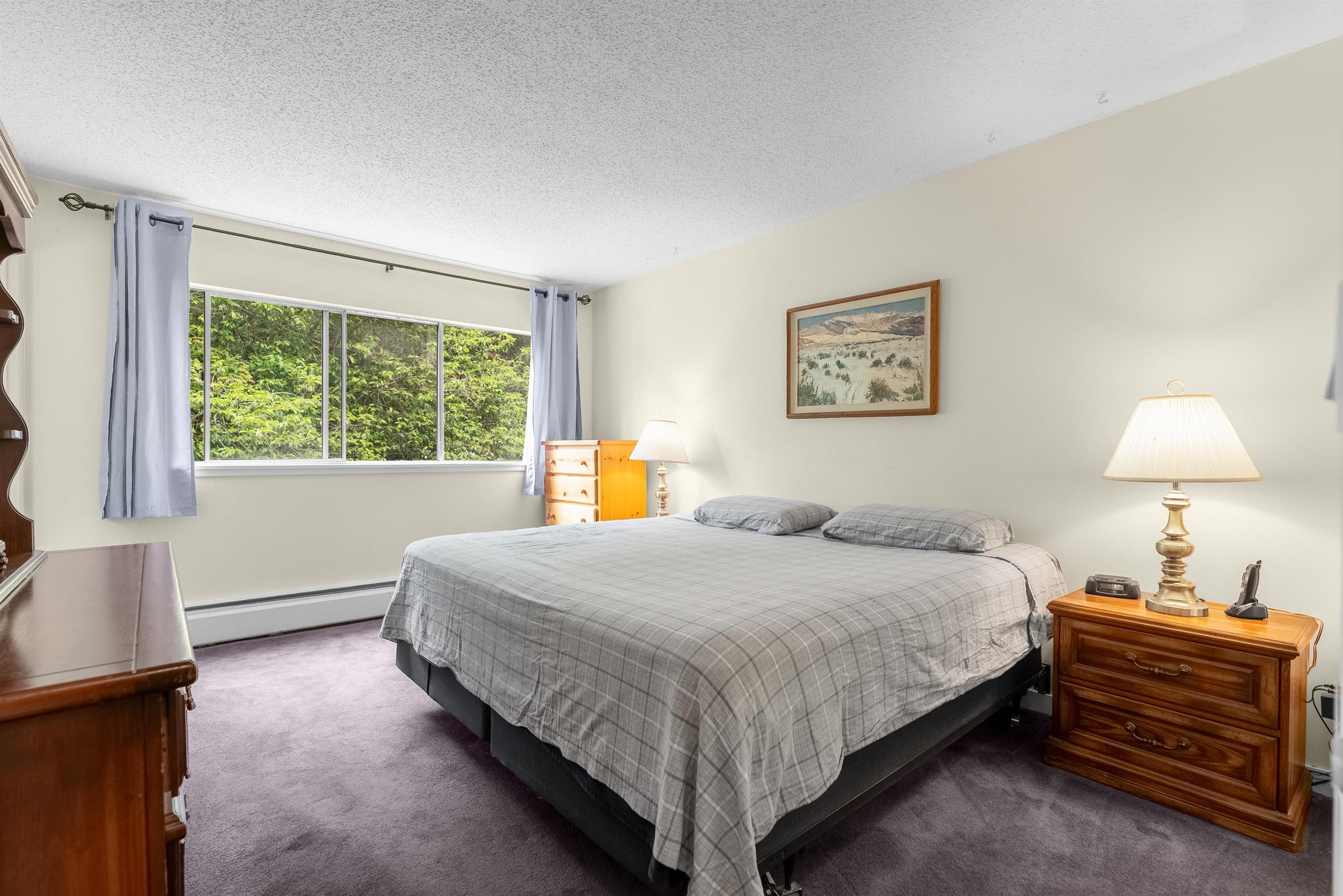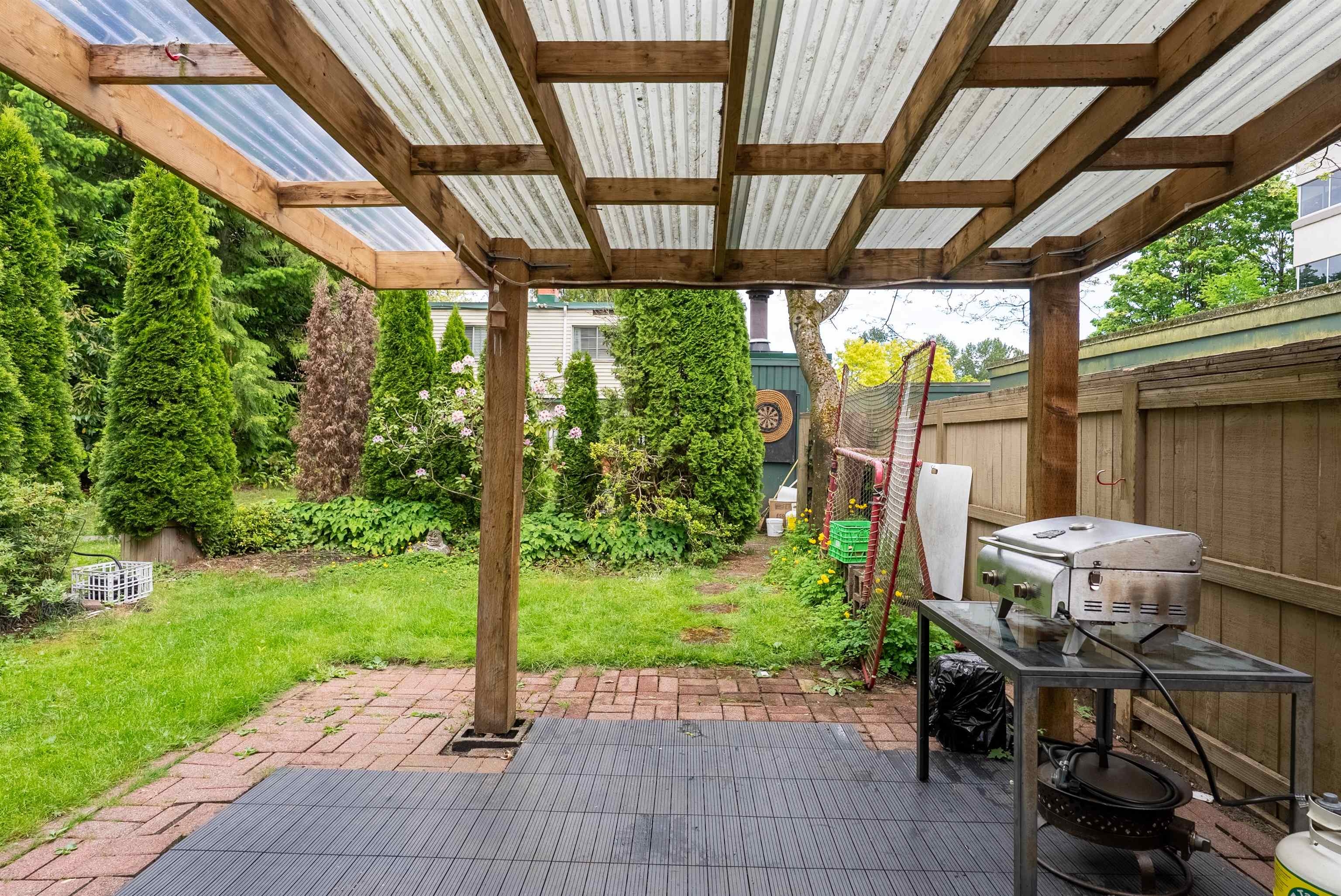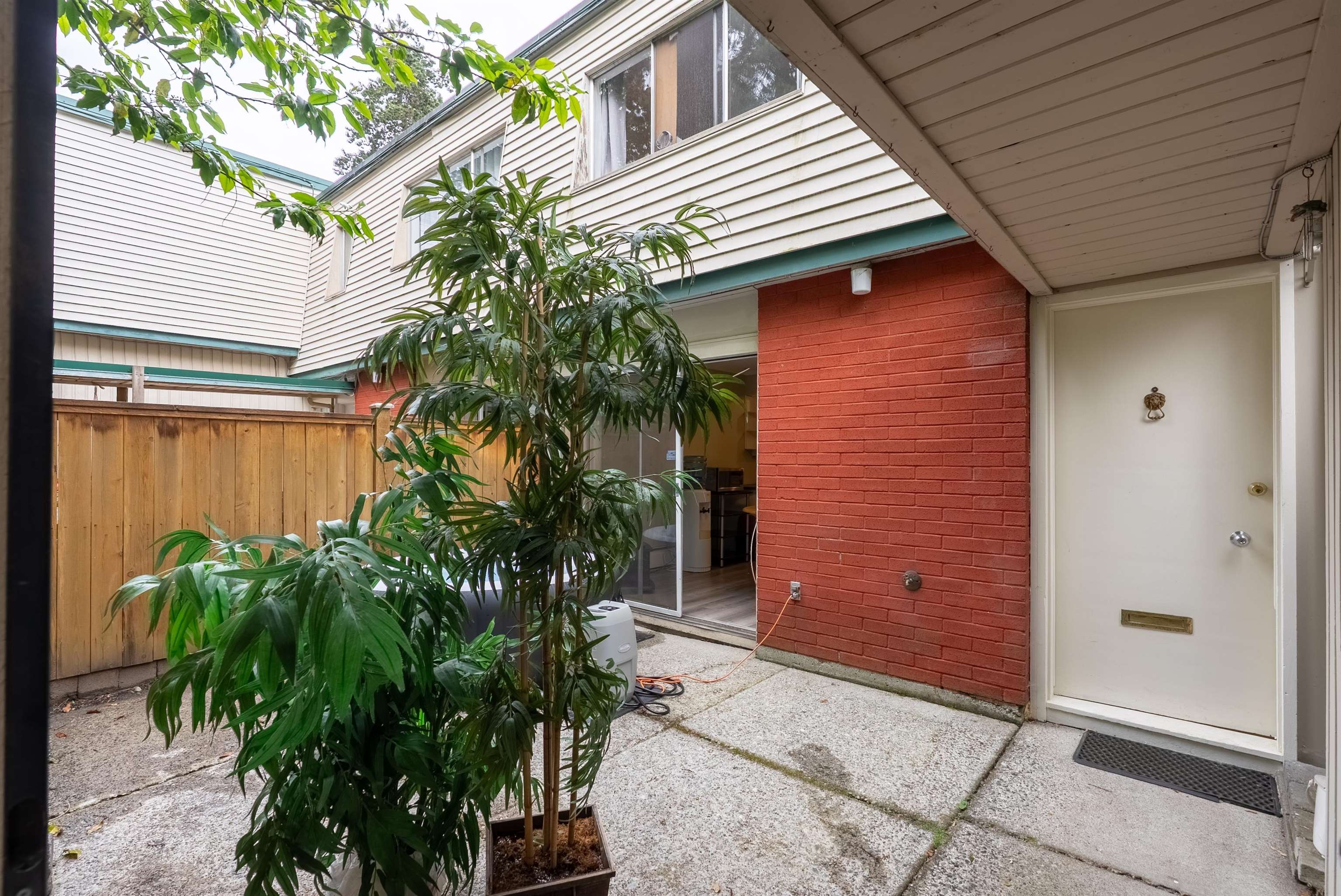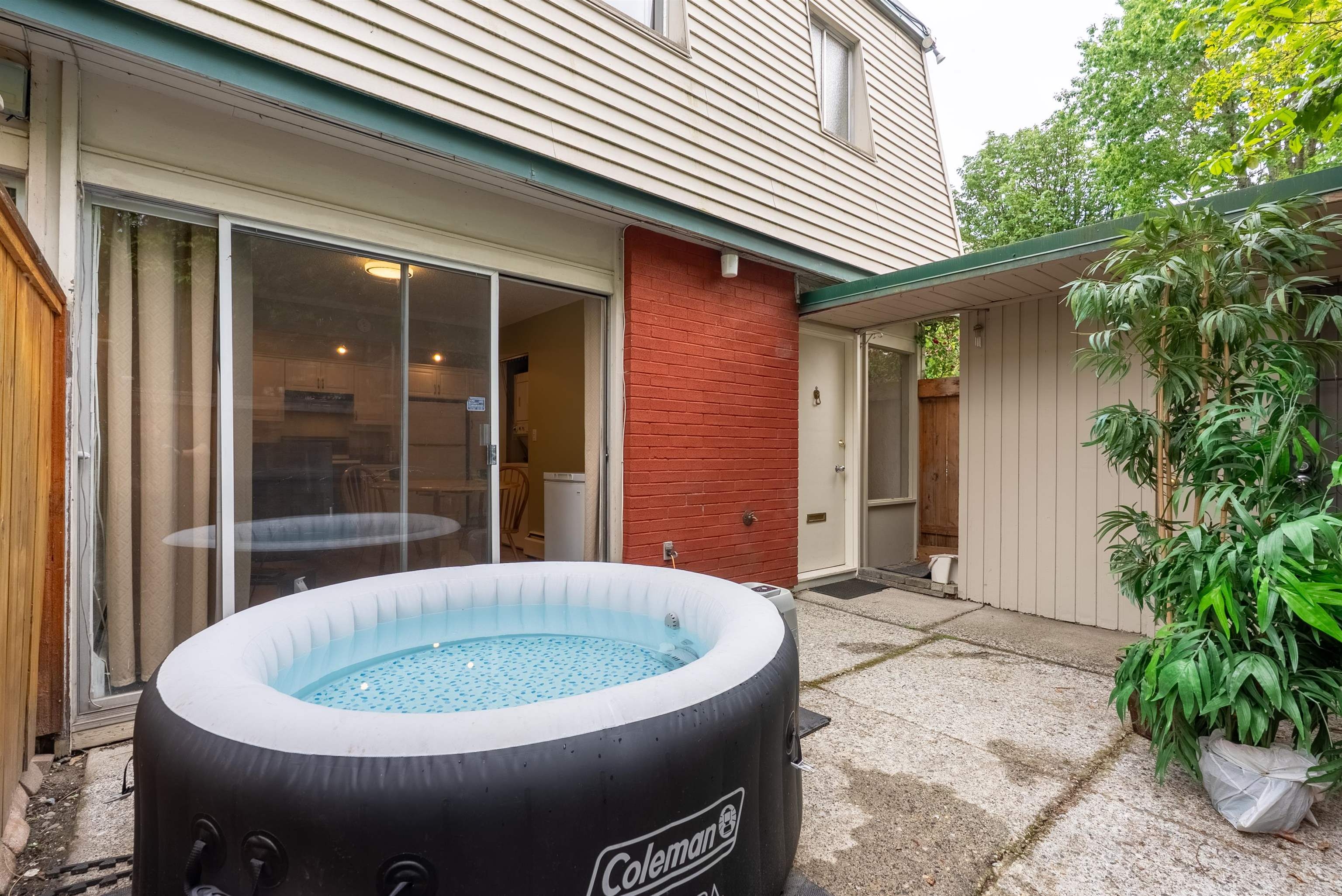 One of the largest CORNER units in the complex. Spacious 3 bed, 3 bath, 2-level townhome with 2 large private patios in a quiet, green setting. Huge, bright rooms and an open concept layout with a large kitchen offer endless potential to make it your own. Generous living/dining area with cozy fireplace. Primary bedroom features full ensuite. Two well-sized bedrooms, in-suite laundry, ample storage, 1 covered parking, and access to an outdoor pool. This well-located complex sits on a massive piece of land with exciting FUTURE REDEVELOPMENT POTENTIAL. Walk to Westview Centre, Delbrook Rec & Edgemont Village. Monthly fee includes HEAT/HOT WATER/PROPERTY TAX! Rentals and pets allowed. Quick possession is possible! Easy to show.