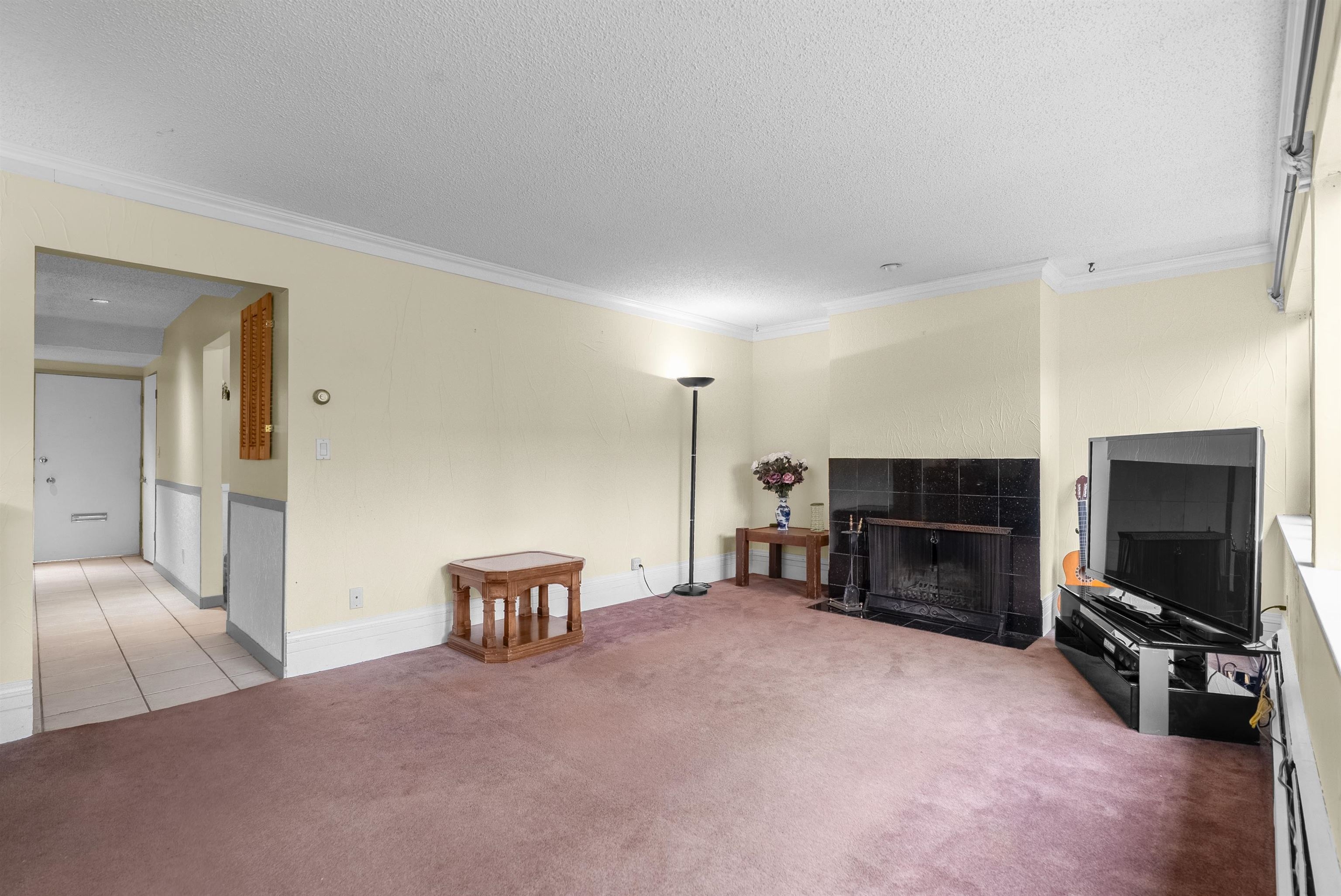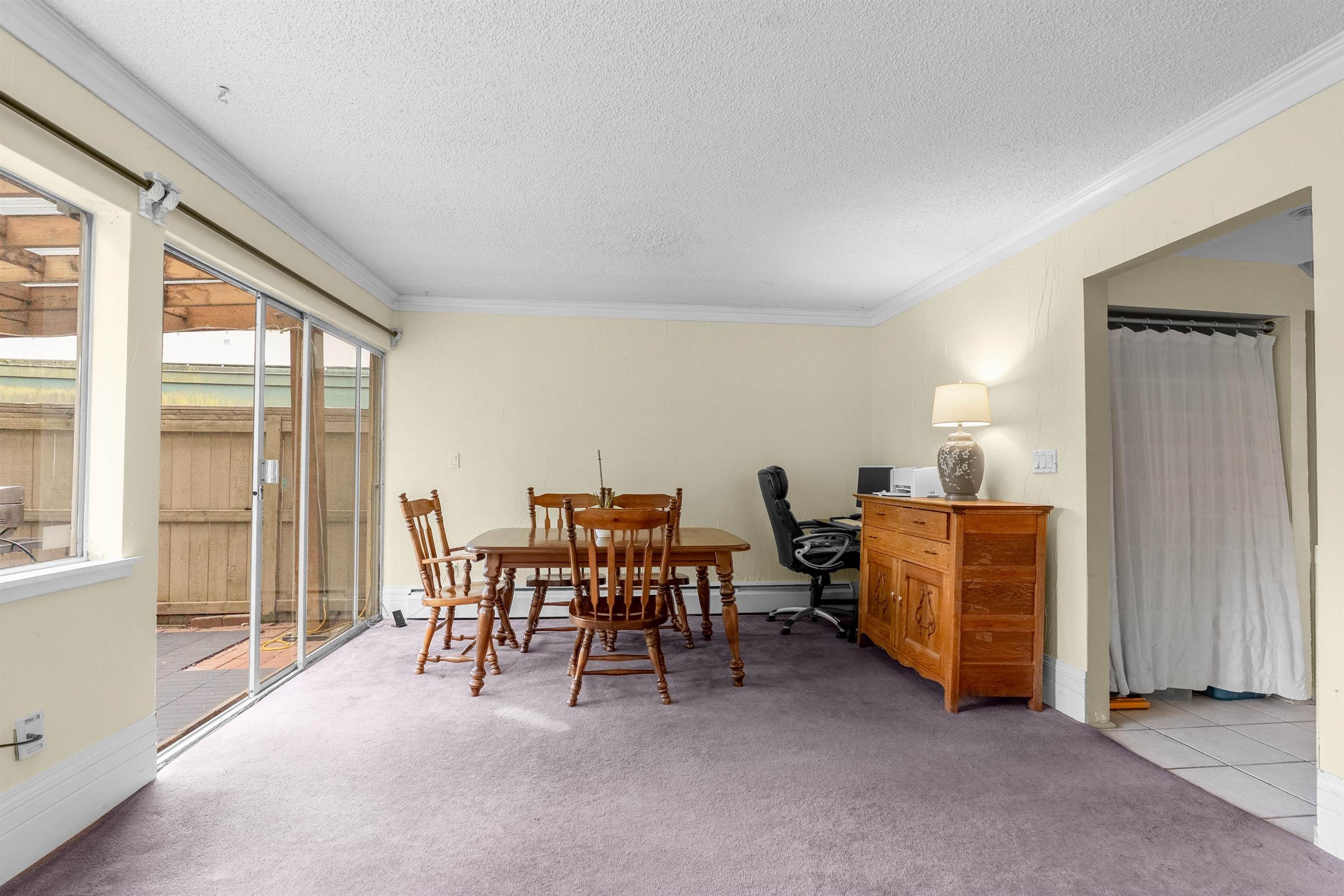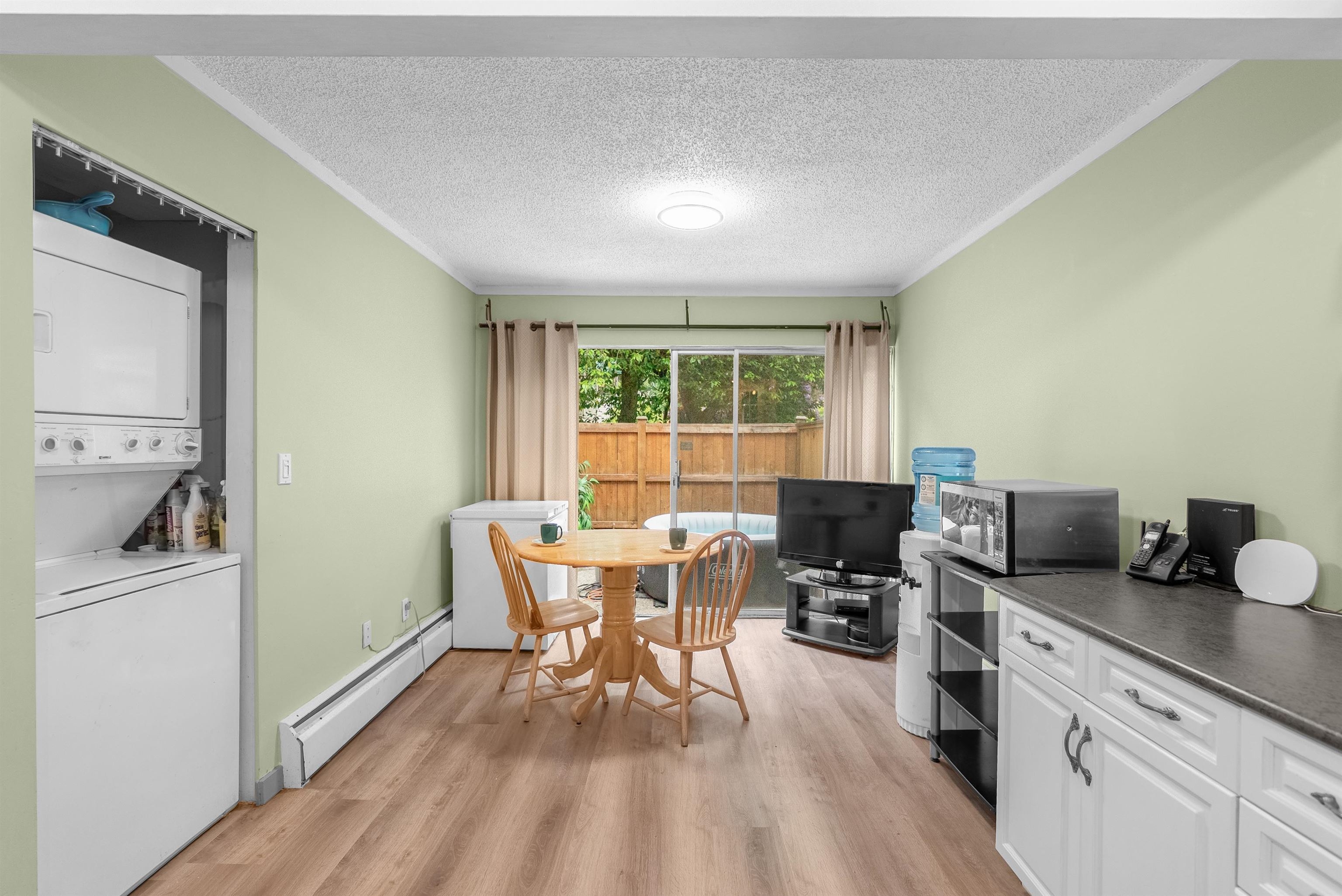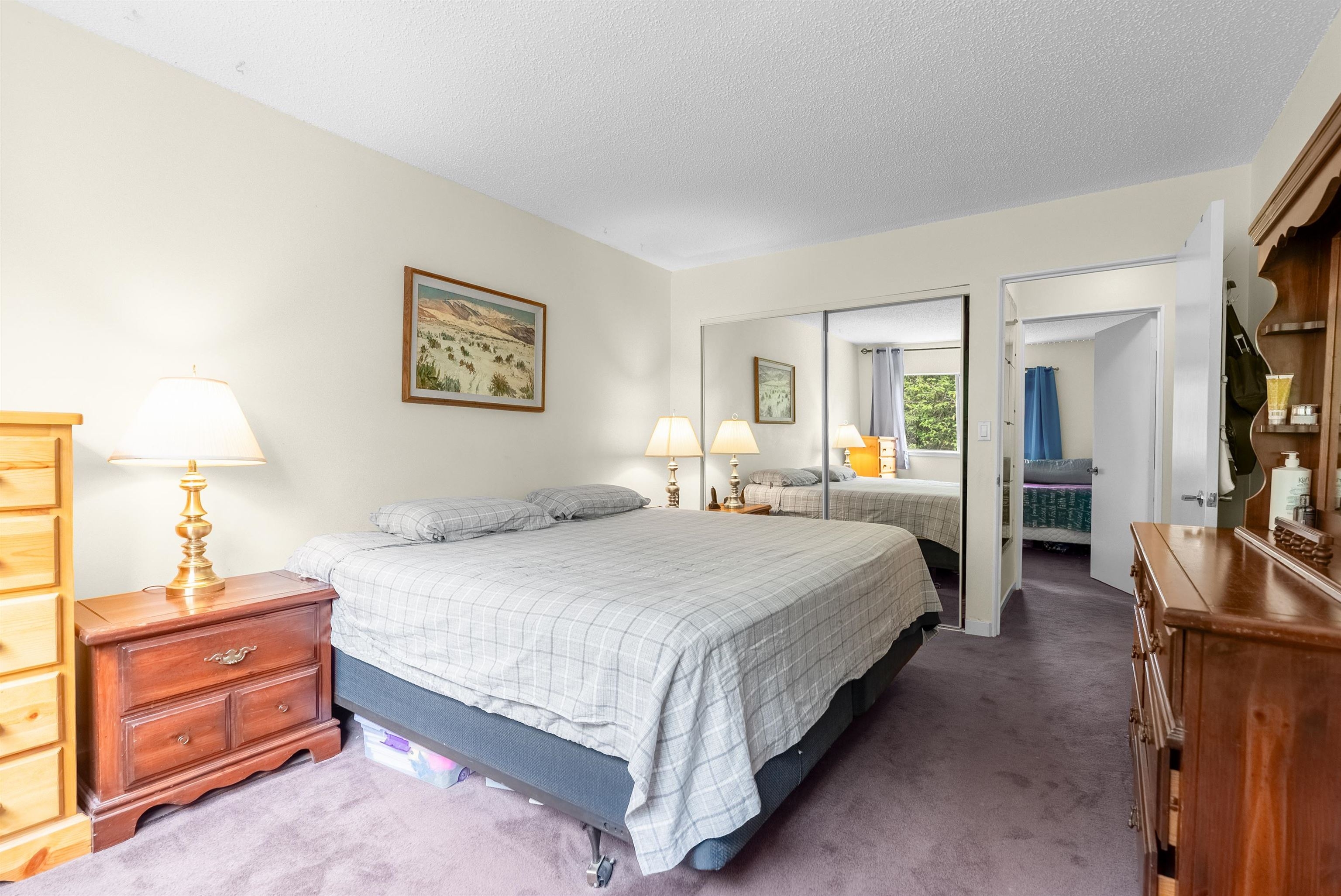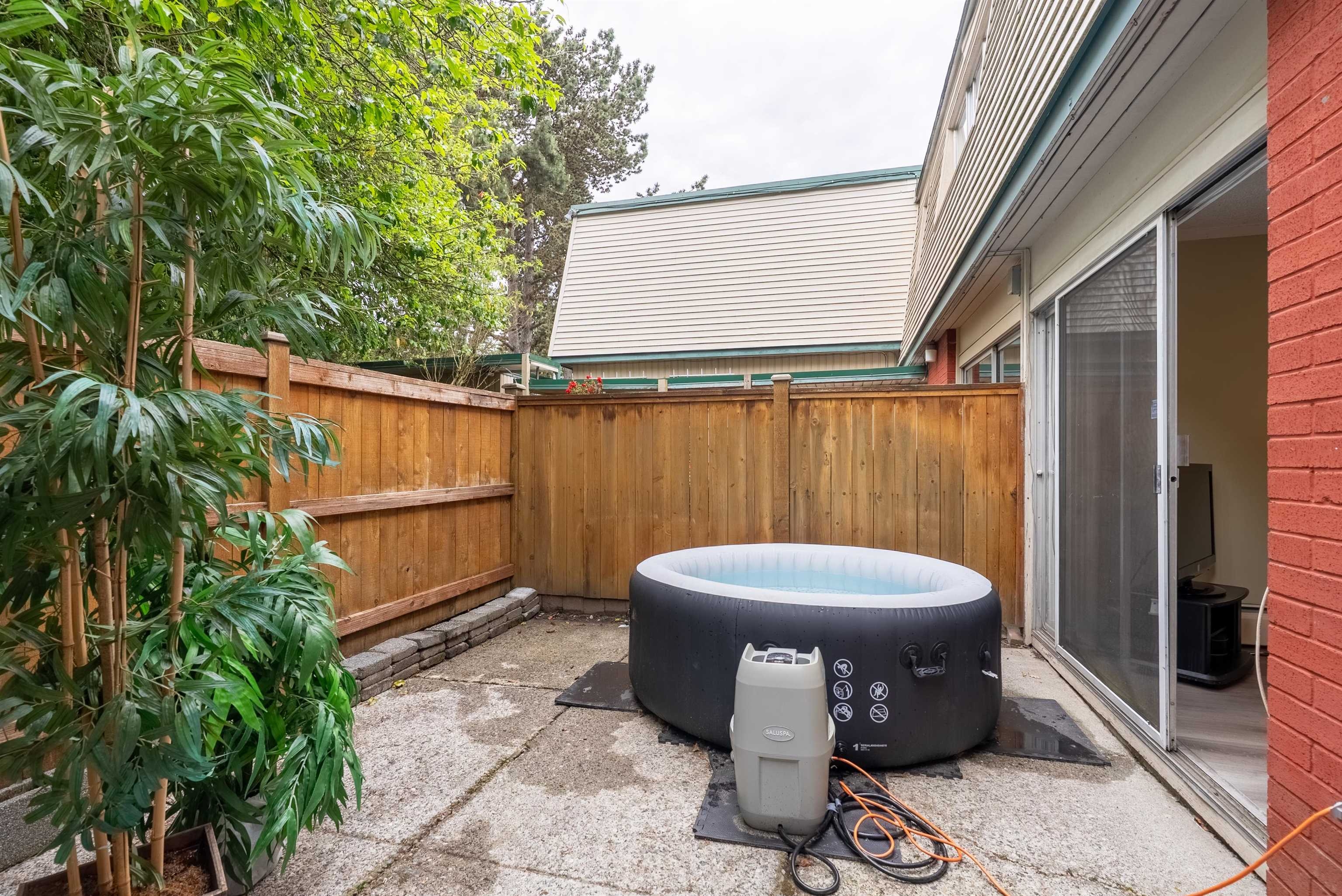 One of the largest CORNER units in the complex. Spacious 3 bed, 3 bath, 2-level townhome with 2 large private patios in a quiet, green setting. Huge, bright rooms and an open concept layout with a large kitchen offer endless potential to make it your own. Generous living/dining area with cozy fireplace. Primary bedroom features full ensuite. Two well-sized bedrooms, in-suite laundry, ample storage, 1 covered parking, and access to an outdoor pool. This well-located complex sits on a massive piece of land with exciting FUTURE REDEVELOPMENT POTENTIAL. Walk to Westview Centre, Delbrook Rec & Edgemont Village. Monthly fee includes HEAT/HOT WATER/PROPERTY TAX! Rentals and pets allowed. Quick possession is possible! Easy to show.